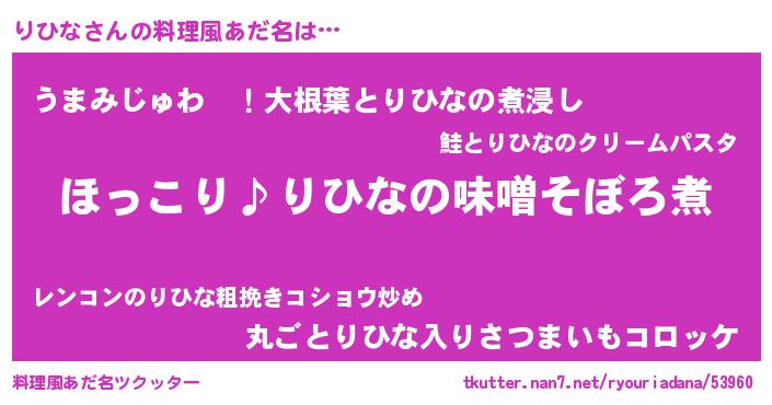 | ヘコむあだ名 | 『りひにゅー』『酢こんぶ』『りひお』 |