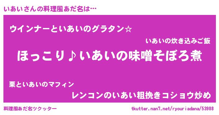 | 男性向けラノベタイトル風あだ名 | 『いあいの憂鬱』『魔法科高校のいあい』 |