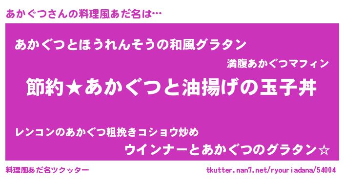 | 意味不明あだ名 | 『ペロリンあかぐつ』『永久保存あかぐつ』 |