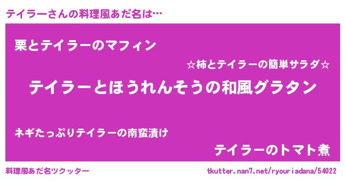 | 男性向けラノベタイトル風あだ名 | 『テイラー~年齢イコール彼女いない歴の魔法使い~』 |