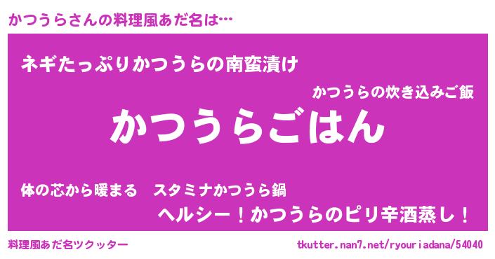 | 意味不明あだ名 | 『めかぶ科かつうら属』『自称かつうら』 |