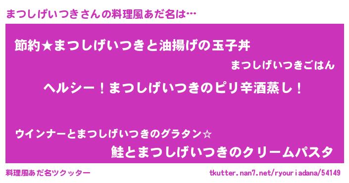 | 男性向けラノベタイトル風あだ名 | 『Re:まつしげいつきから始める異世界生活』 |