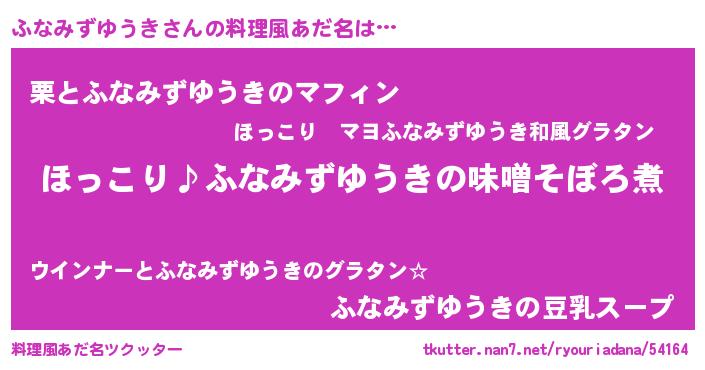 | 男性向けラノベタイトル風あだ名 | 『ふなみずゆうきの憂鬱』 |