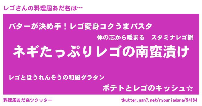 | 自動車の名前っぽいあだ名 | 『レゴティマ』『レンR』『レクア』 |
