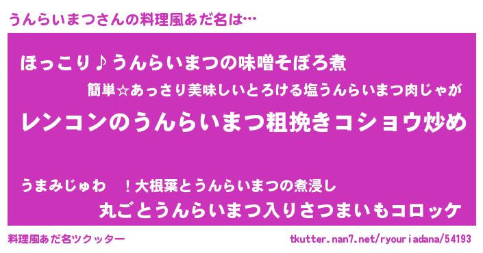 | 胡散臭い通販商品みたいなあだ名 | 『ガンによく効く高麗人参…その名も「うんらいまつ」』 |