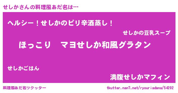| ヘコむあだ名 | 『せしか(爆)』『せしっ子』『豆乳』 |
