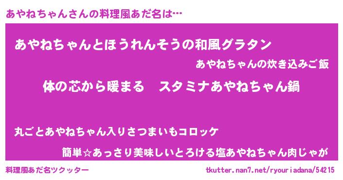 | 意味不明あだ名 | 『あやねちゃんフォーエバー』 |