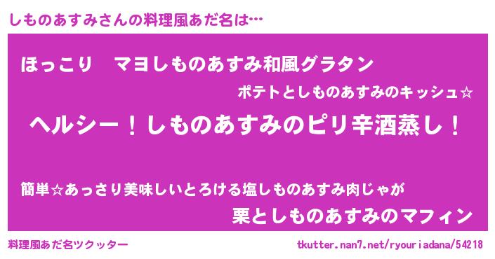 | 意味不明あだ名 | 『自称しものあすみ』 |