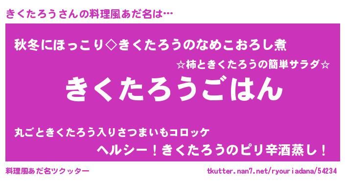 | 男性向けラノベタイトル風あだ名 | 『転生したらきくたろうだった件』 |