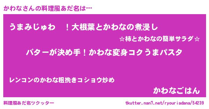 | ヘコむあだ名 | 『なまこ酢』『かわな(笑)』 |