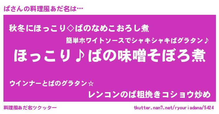 | 男性向けラノベタイトル風あだ名 | 『ばの憂鬱』『魔法科高校のば』 |