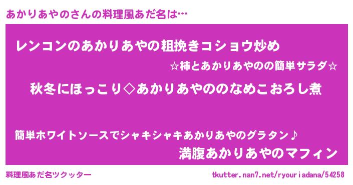 | 意味不明あだ名 | 『自称あかりあやの』 |