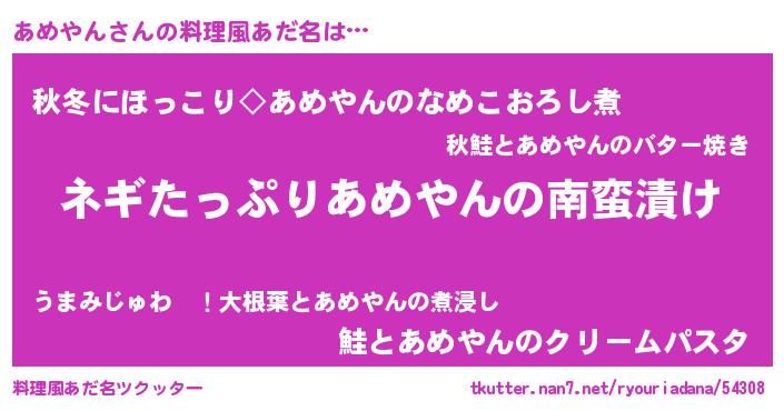| 意味不明あだ名 | 『ペロリンあめやん』『永久保存あめやん』 |