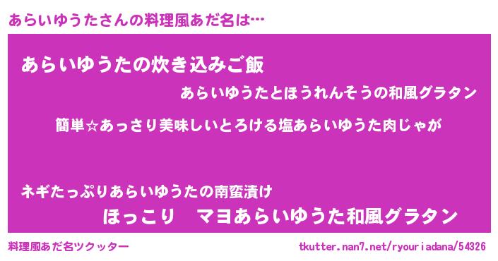 | ヘコむあだ名 | 『あらいゆうた(笑)』『あらっふぃ~』 |