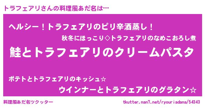 | 女子向けラノベタイトル風あだ名 | 『死神トラフェアリの再婚』 |