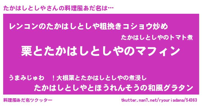 | 恥ずかしいあだ名 | 『タカハシトシヤデラックス』『たかちん』 |