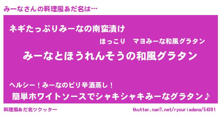 | ピコ太郎風あだ名 | 『ミコ二郎』『ミー五郎』『ミミ太郎』 |