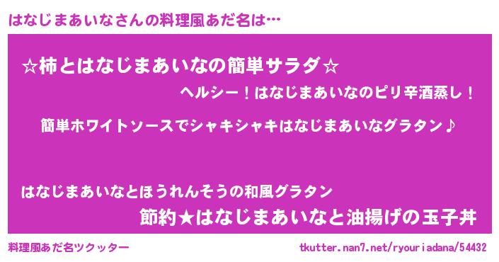 | 女子向けラノベタイトル風あだ名 | 『はなじまあいな様がみてる』 |