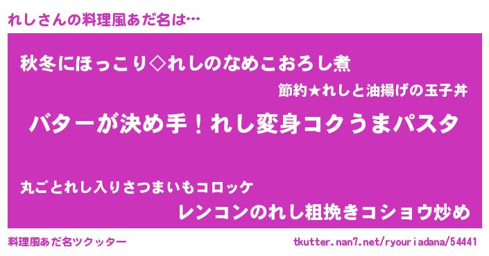 | 男性向けラノベタイトル風あだ名 | 『ノーゲーム・ノーレシ』『れしの憂鬱』 |