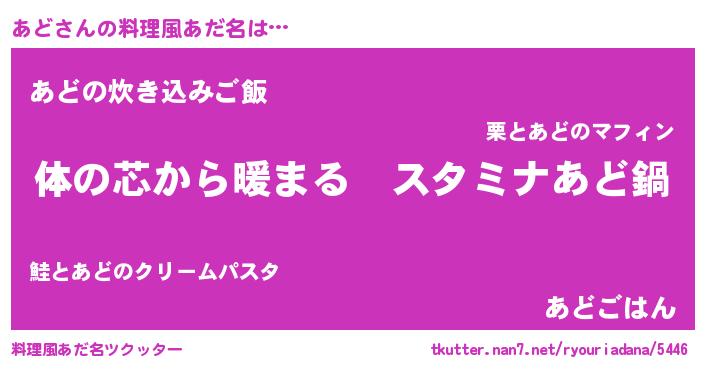 | 女子向けラノベタイトル風あだ名 | 『あどの雑貨屋さん』『死神あどの再婚』 |