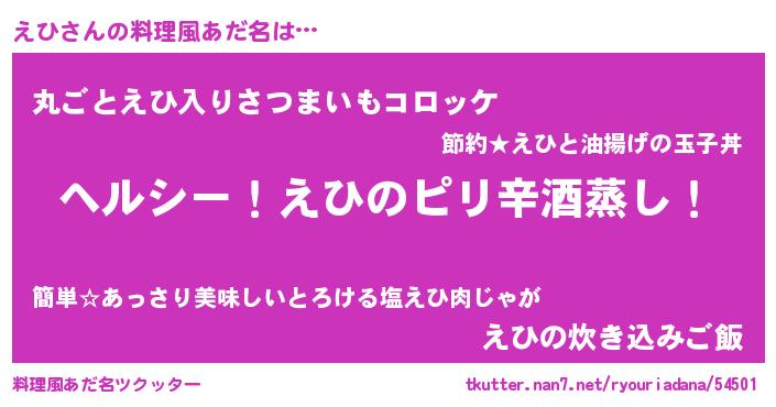 | 男性向けラノベタイトル風あだ名 | 『Re:えひから始める異世界生活』 |