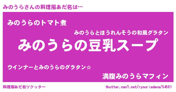 | 女子向けラノベタイトル風あだ名 | 『みのうらは平凡を望む』 |