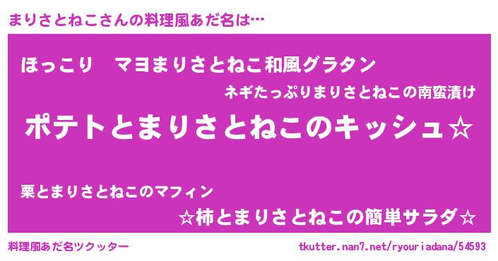 | 男性向けラノベタイトル風あだ名 | 『まりさとねこの嫁は女の子じゃないと思った?』 |
