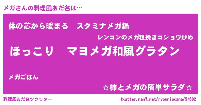 | ヒーロー風カッコイイあだ名 | 『仮面メガダー』『ウルトラメガマン』 |