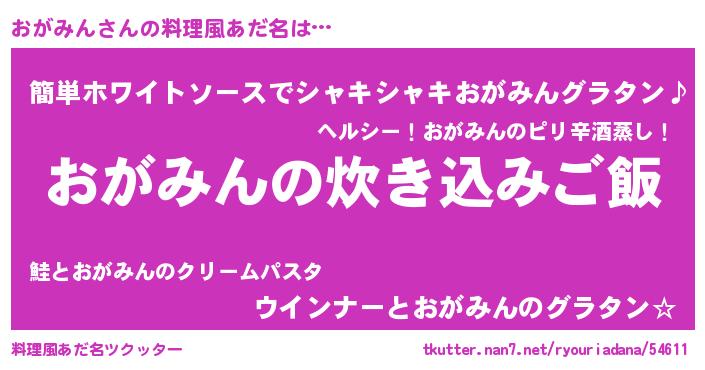 | ヘコむあだ名 | 『おがぷりん』『なまこ酢』 |