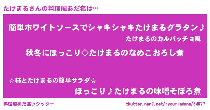 | ポケモン風あだ名 | 『タケゴンZ』『ヒタケマル』 |