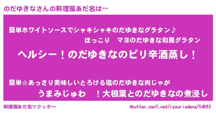 | 意味不明あだ名 | 『自称のだゆきな』『永久保存のだゆきな』 |