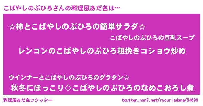 | 胡散臭い通販商品みたいなあだ名 | 『テレビで話題の高麗人参…その名も「こばやしのぶひろ」』 |