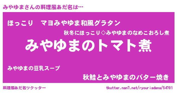 | ヘコむあだ名 | 『みやゆま(苦笑)』『みや太郎』 |
