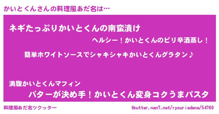 | 男性向けラノベタイトル風あだ名 | 『かいとくんの嫁は女の子じゃないと思った?』 |