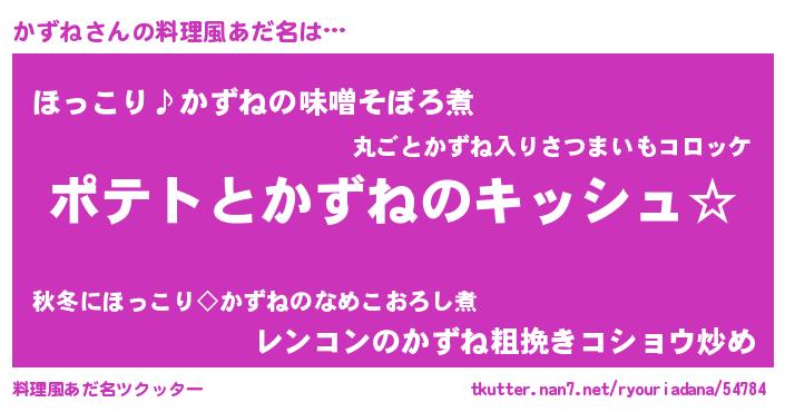 | 女子向けラノベタイトル風あだ名 | 『かずねの卵を拾いまして』 |