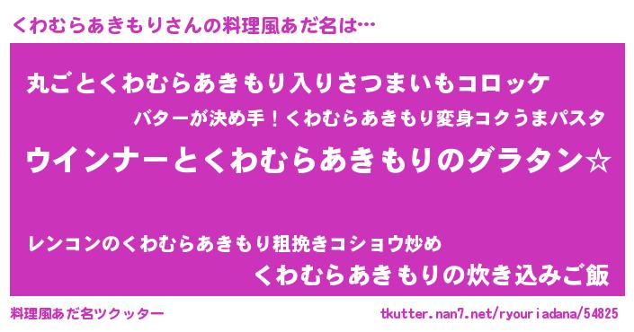| 欧米人風あだ名 | 『くわむらあきもりクリステル』 |