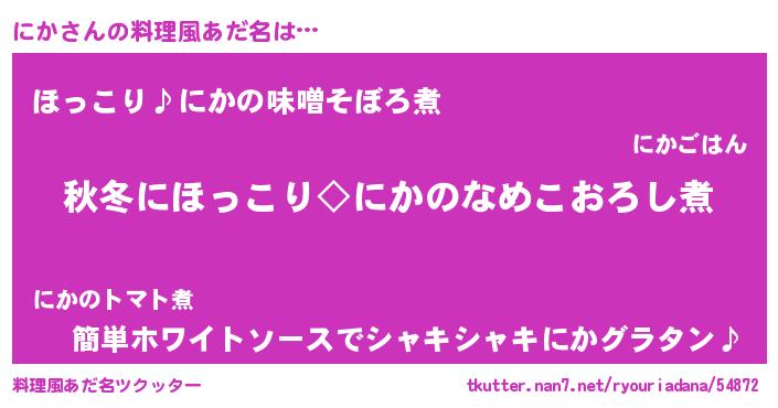 | ポケモン風あだ名 | 『ニカゴンZ』『ニカチュウ』『ヒニカ』 |