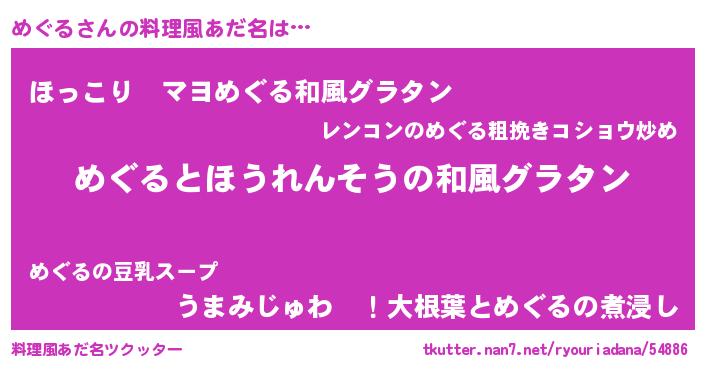| ヘコむあだ名 | 『なまこ酢』『めぐっぺ』 |