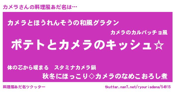 | 女子向けラノベタイトル風あだ名 | 『カメラの卵を拾いまして』 |