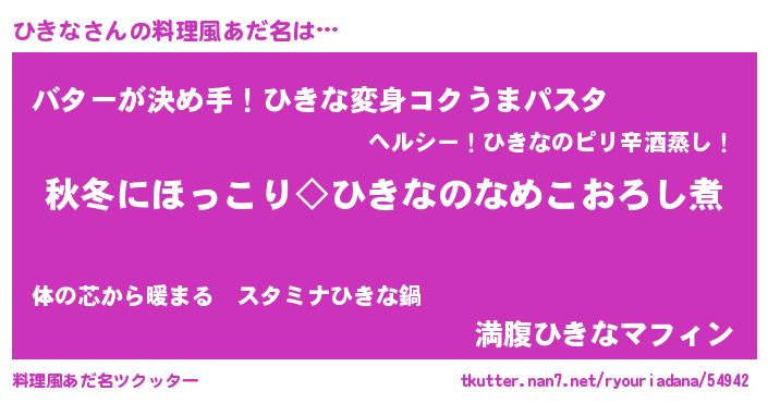 | ヘコむあだ名 | 『ひきな(苦笑)』『豆乳』『ひきっぺ』 |