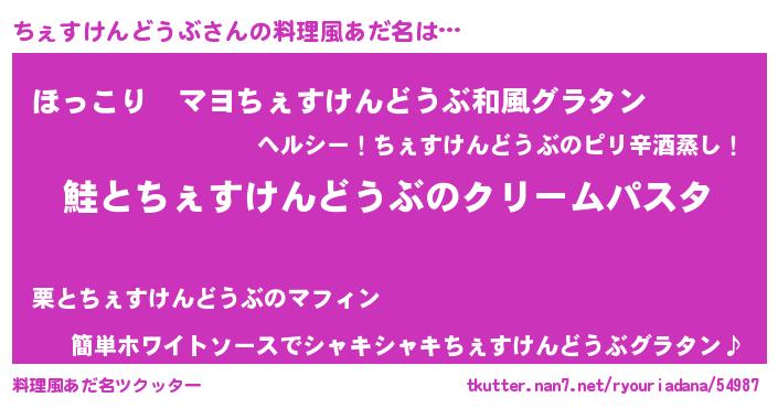 | ヒーロー風カッコイイあだ名 | 『慈愛の使者ちぇすけんどうぶ』 |
