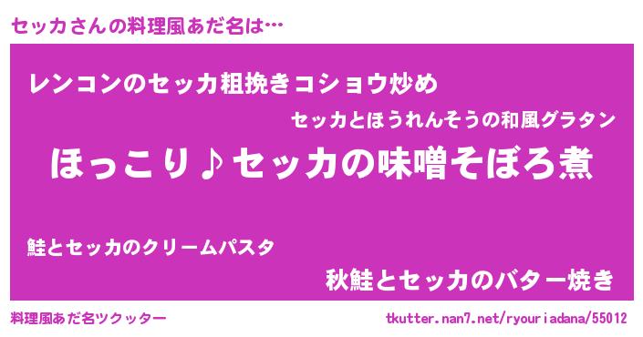 | 胡散臭い通販商品みたいなあだ名 | 『必ず成功するブレスレット…その名も「セッカ」』 |