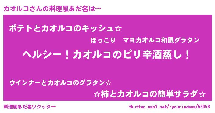 | 男性向けラノベタイトル風あだ名 | 『Re:カオルコから始める異世界生活』 |