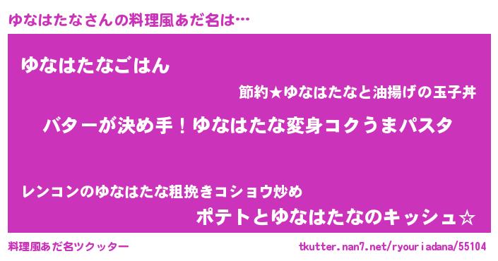 | 男性向けラノベタイトル風あだ名 | 『ノーゲーム・ノーユナハタナ』 |