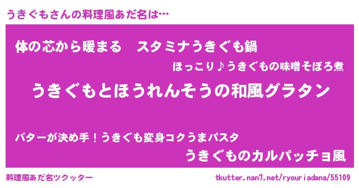| 恥ずかしいあだ名 | 『うきっちょ』『プリティーうきぐも』 |