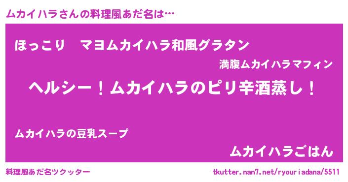 | 意味不明あだ名 | 『自称ムカイハラ』『永久保存ムカイハラ』 |