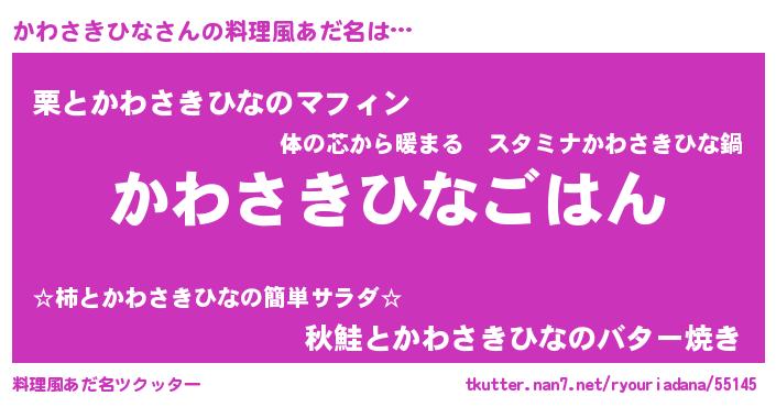 | ヘコむあだ名 | 『かわさきひな(爆)』『なまこ酢』 |