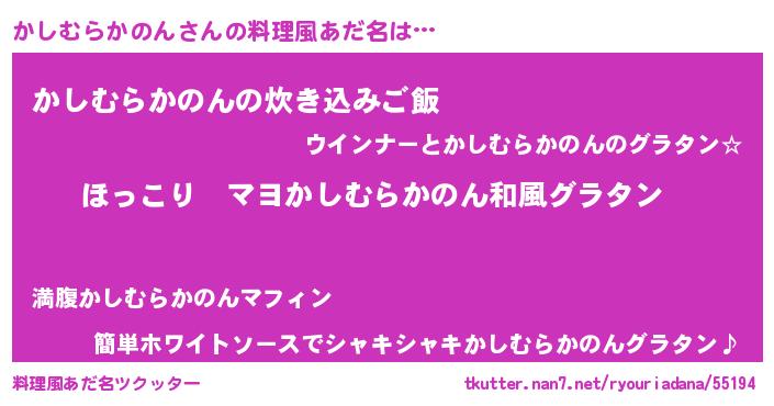 | 男性向けラノベタイトル風あだ名 | 『この素晴らしい世界にかしむらかのんを!』 |