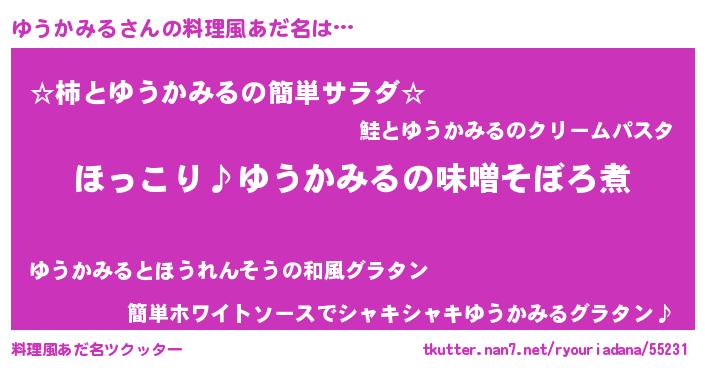 | 恥ずかしいあだ名 | 『プリティーゆうかみる』『ユウリンリン』 |