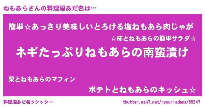 | 胡散臭い通販商品みたいなあだ名 | 『億万長者になれる霊験あらたかなお札…その名も「ねもあら」』 |